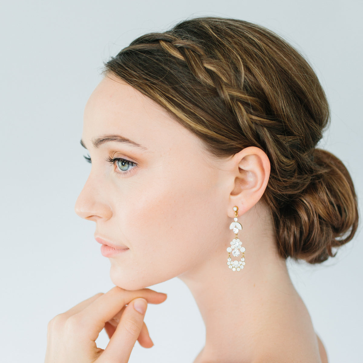 Description Our "Ibiza" headband is adorned with white opal crystals that bring a subtle touch of blue to your ensemble. The Swarvoski crystal strands on the back of this accessory...