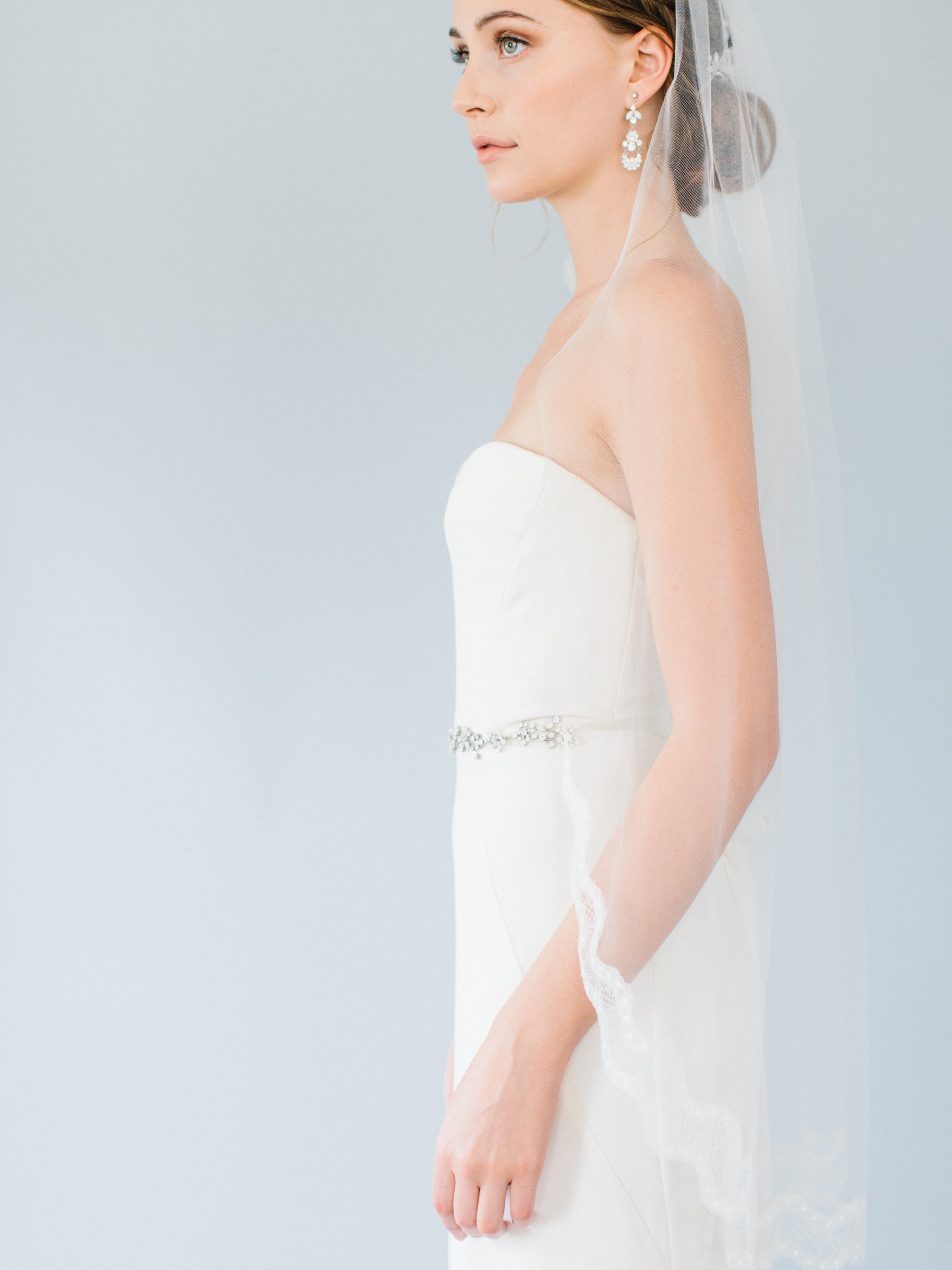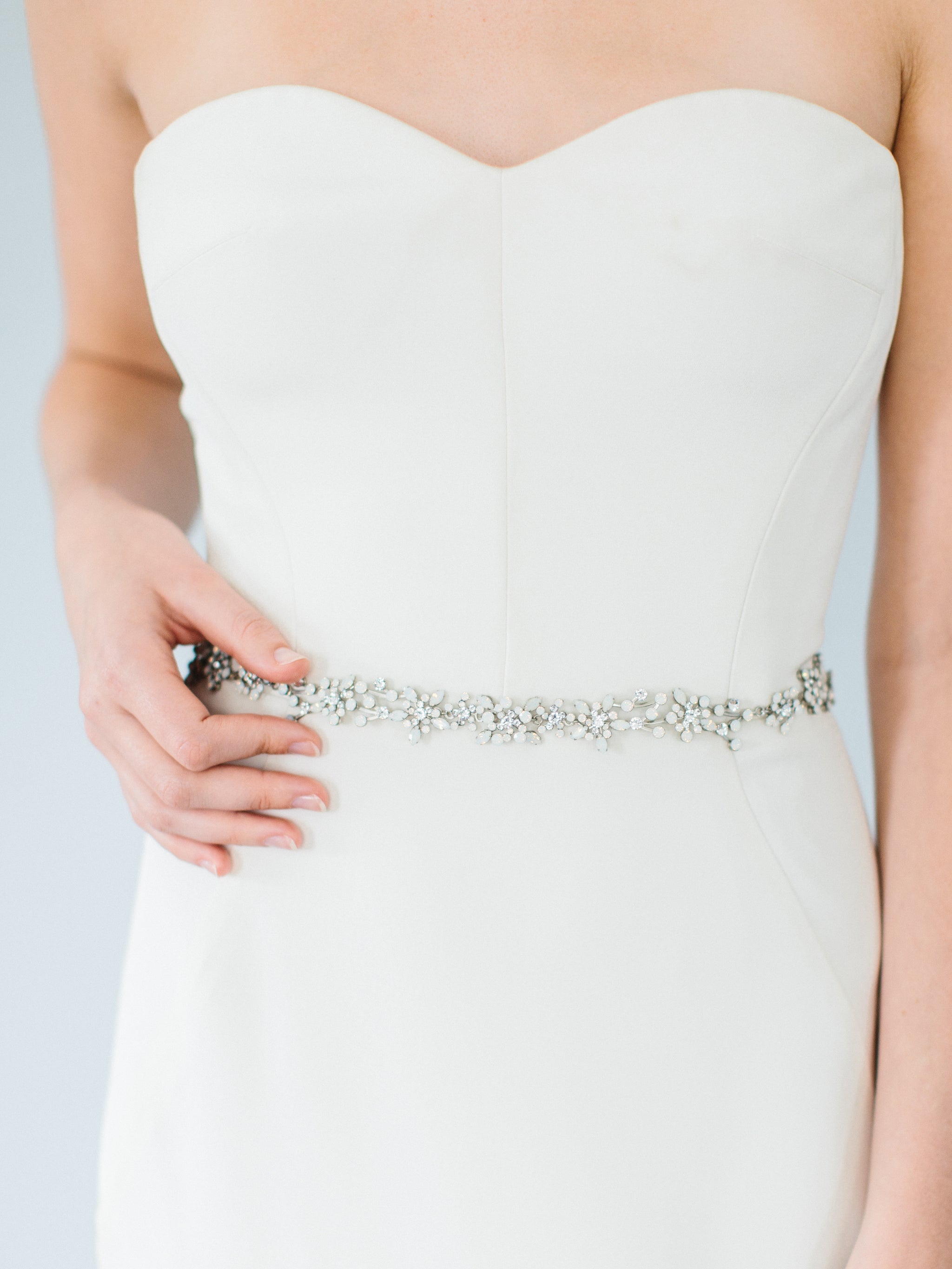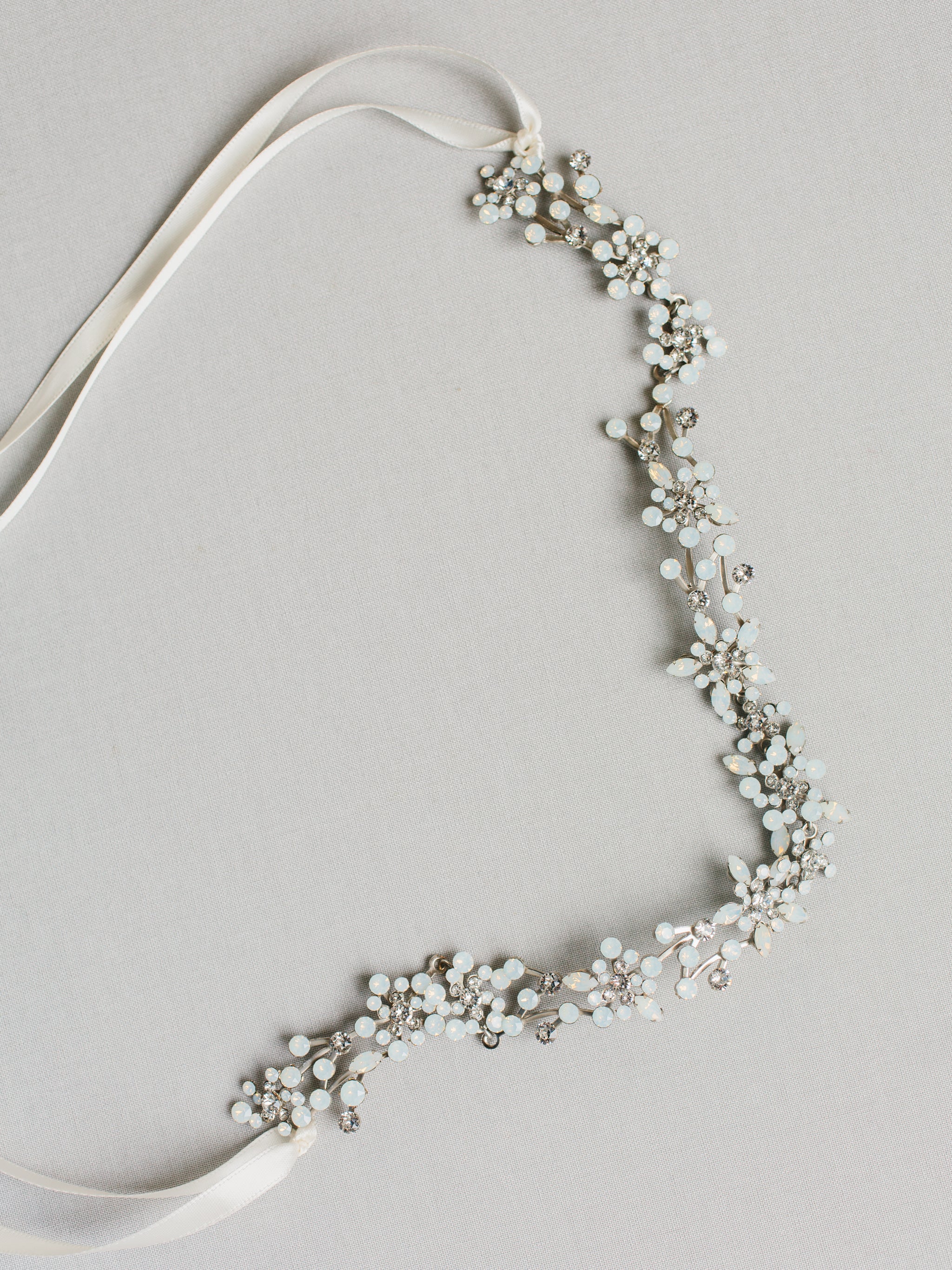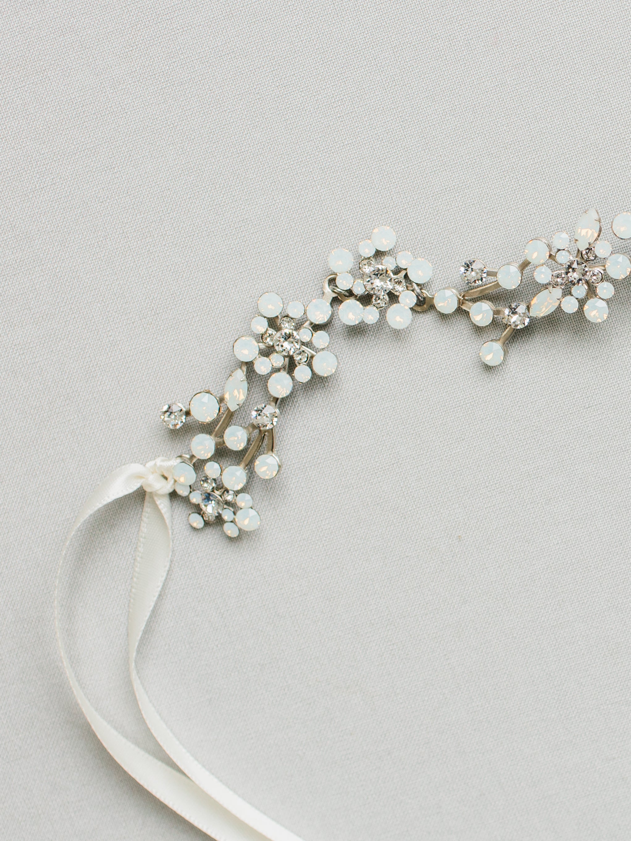 Our "Eze" accessory is the perfect item to give your gown a touch of subtle blue. It is finished with a double ivory satin ribbon that can be tied with a bow or knot in the back. This item can be worn as a belt or hair ribbon to provide multiple "looks" on your wedding day!